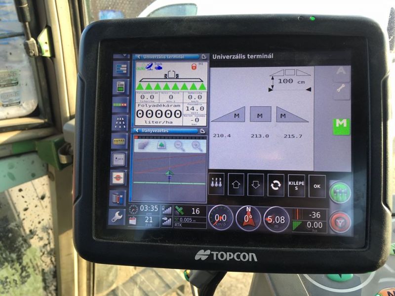 A Topcon rendszer felel a Hardi Navigator permetezőgép automatikus szakasz- és mennyiségszabályzásáért, valamint vezérli a gépen lévő NORAC ultrahangos keretszintező rendszert, továbbá a Kverneland szemenkénti vetőgép automatikus sorelzárása szintén az X25 monitor feladata, így optimalizálva a felhasznált magas minőségű (és árú) vetőmag mennyiségét.