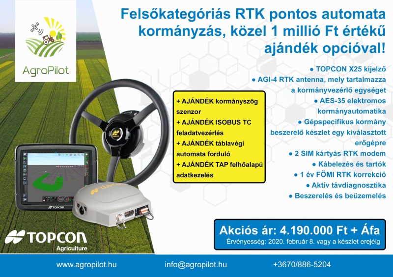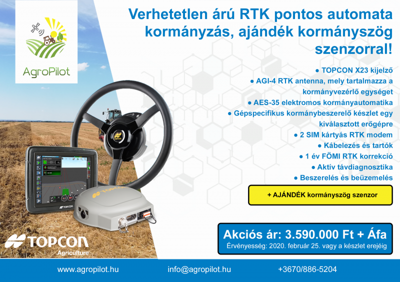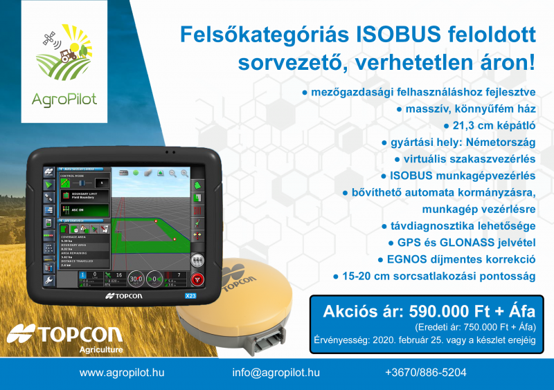 A részletekkel kapcsolatban keresse a Topcon termékek kizárólagos magyarországi importőrét, az AgroPilot Kft-t elérhetőségeik bármelyikén, vagy az AGROmashEXPO 3-as kapujánál lévő nagy sátorban.