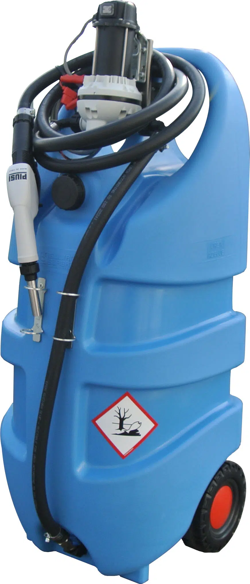 110 literes Ad Blue kiadagoló 12V-os szivattyúval, 30ltr/perc, 3 méter tömlővel, automata pisztollyal. - Fogantyú fent a könnyű fogáshoz és megemeléshez. - Rögzíthetőség a feszítőgurtni számára. - Biztonsági golyós szelep. - Betöltőfedél kifolyás biztosítóval. - Defekttűrő kerekek és támasztó lábak. - Pisztolytartó elől. - Térfogat 110 liter. - Szélessége: 460 mm - Mélysége: 440 mm. - Magassága: 1100 mm - Súly, üresen: 12 kg