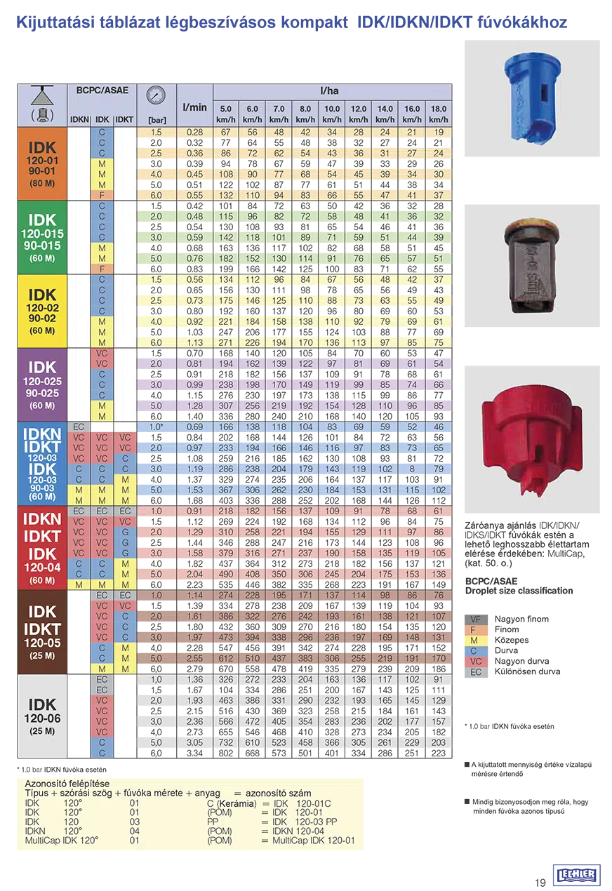 Lechler IDK 120 C légbeszívásos, kompakt, lapos sugaras fúvóka, csökkentett elsodródással. Kerámia kivitel. A méret meghatározásához használja a Lechler fúvóka kalkulátort vagy ennek telefonra telepíthető változatát, aminek használatáról bővebben blogunkban olvashat.