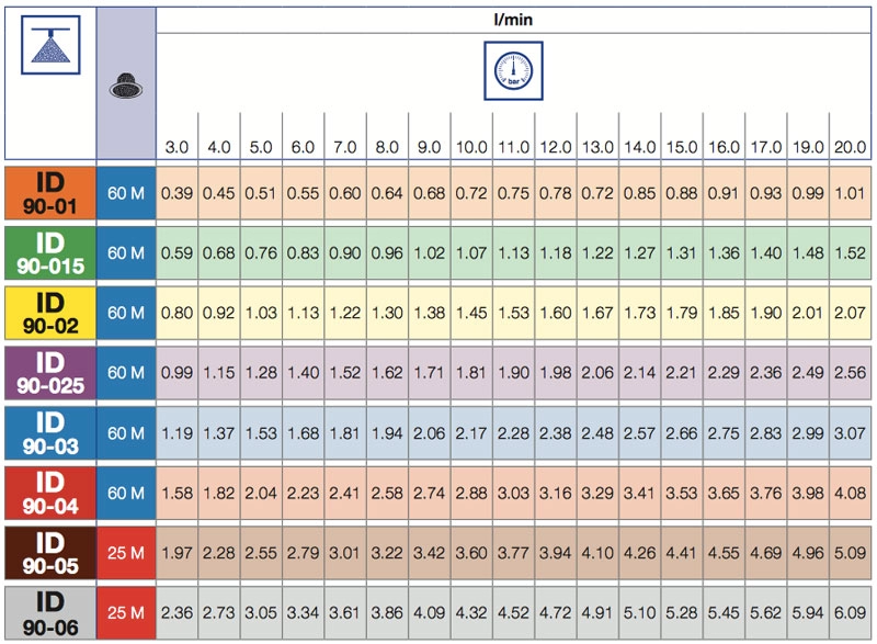 Lechler ID 90 C légbeszívásos, lapos sugaras fúvóka. Kerámia betétes kivitel. Nagymértékben csökkentett elsodródás. A méret meghatározásához használja a Lechler fúvóka kalkulátort vagy ennek telefonra telepíthető változatát, aminek használatáról bővebben blogunkban olvashat.
