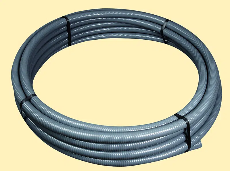 Vastagfalú, kopásálló, spirálerősítésű tömlő erős igénybevételre, szürke – fedett kivitelben.